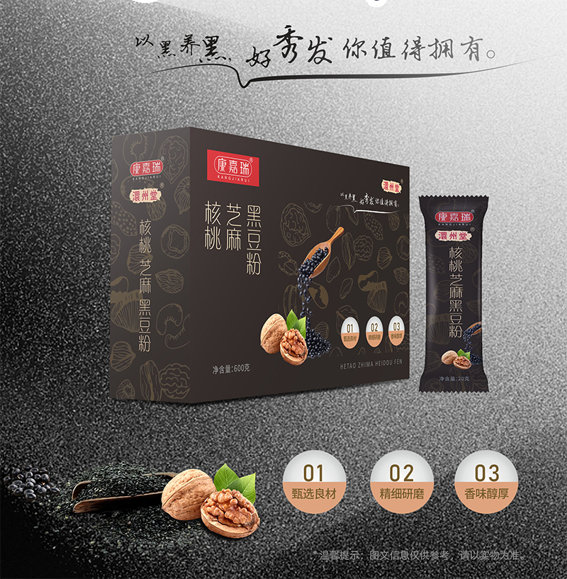 產品描述:核桃芝麻黑豆粉是市面上非常受歡迎的代餐食品,口感好,且飽腹感十足,是非常值得收藏的養生品!