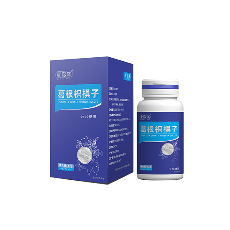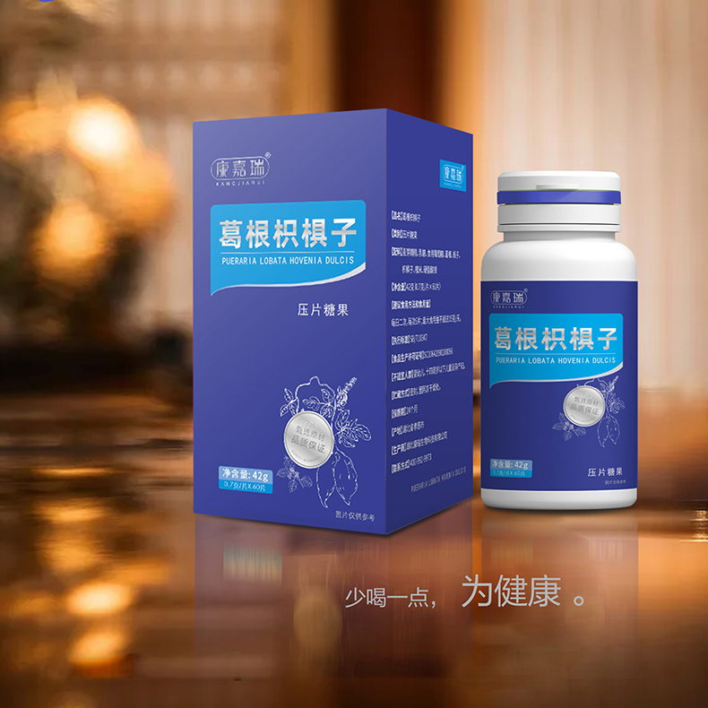 產品描述:葛根枳椇子壓片糖果是由麥芽糊精、乳糖、食用葡萄糖、葛根、梔子、枳椇子、槐米、硬脂酸鎂配伍而成,是現代職場養肝護肝的一款產品,輕松應對各種聚餐聚會!